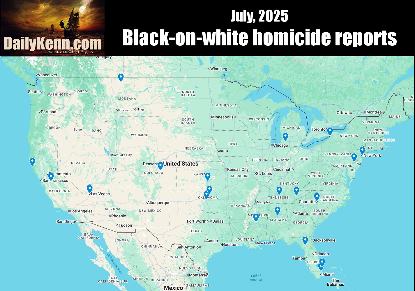 🔴 23 black-on-white & 4 white-on-black homicide reports, July, 2025
