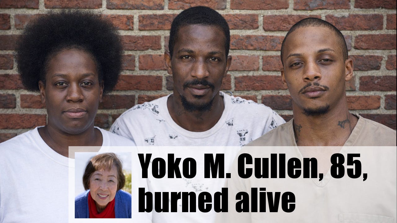 Yoko Cullen had just finished an evening of bingo. As she returned to her vehicle, she was targeted by three black offenders who assumed she had cash from her winnings. Cullen was forcibly abducted and placed in the trunk of her car during a carjacking. Evidence showed she was alive at the time.
