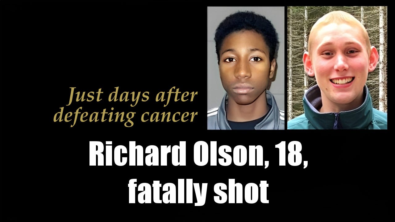 Ian Richard Olson, 18, a cancer survivor from St. Helens, was fatally shot during a robbery at a Motel 6 in Portland, Oregon, on Dec. 21, 2018. Authorities said 15-year-old Jeremiah Terrel Hannon robbed and killed him, later pleading guilty to second-degree murder and receiving an eight-year juvenile sentence. Olson may be released later this year, reports say. [Full report ►]