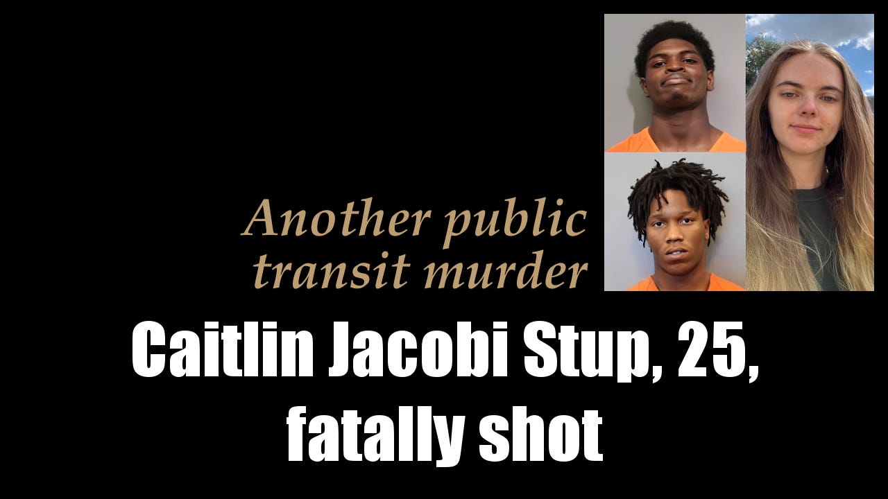 Caitlin Jacobi Stup, 25, died after being shot in the head during a gunfight on a public bus in Houston, Texas, on January 7, 2026. A 16-year-old boy was also wounded. Suspects Brayden Smith, 17, and Patrick Scott, 18, exchanged fire following a dispute; Smith faces murder charges, while Scott is charged with unlawful firearm possession. Authorities arrested both teens the next day using surveillance footage. [Full report ►]