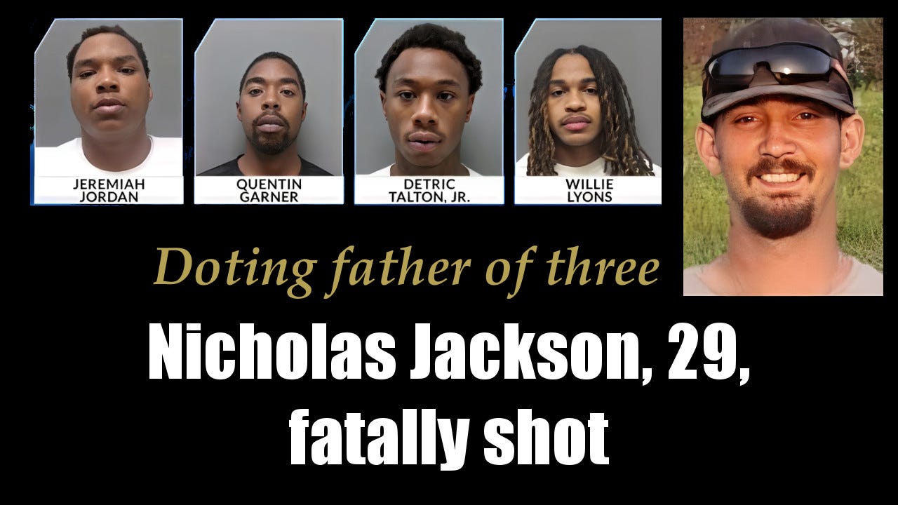 6. In Calhoun, Louisiana, 29-year-old father of three, Nicholas Gabriel Jackson, was shot and killed during an armed robbery at his mobile-home-park residence on November 28, 2025. Four suspects—Willie Cordell Lyons, 19; Jeremiah Lee Jordan, 18; Detric Latron Talton Jr., 24; and Quentin Jamal Garner, 26—have been arrested and charged with second-degree murder and armed robbery.