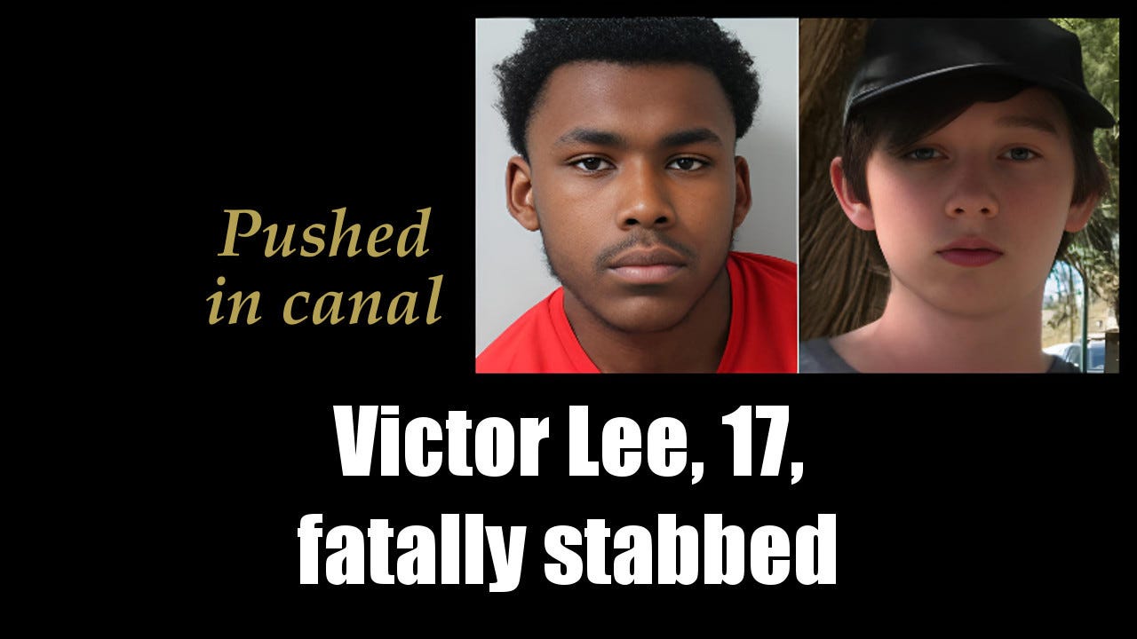 17-year-old Victor Lee of Ealing, a district in west London, England, was fatally stabbed by Elijah Gokool-Mely, also 17 at the time, during a knife sale on June 25, 2023, along London’s Grand Union Canal near Wormwood Scrubs Park in England. Gokool-Mely, now 18, pushed the bleeding Lee into the water. He was sentenced to life imprisonment with a 20-year minimum in July 2024. Two younger accomplices, aged 14 and 15, were acquitted. [Full report ►]