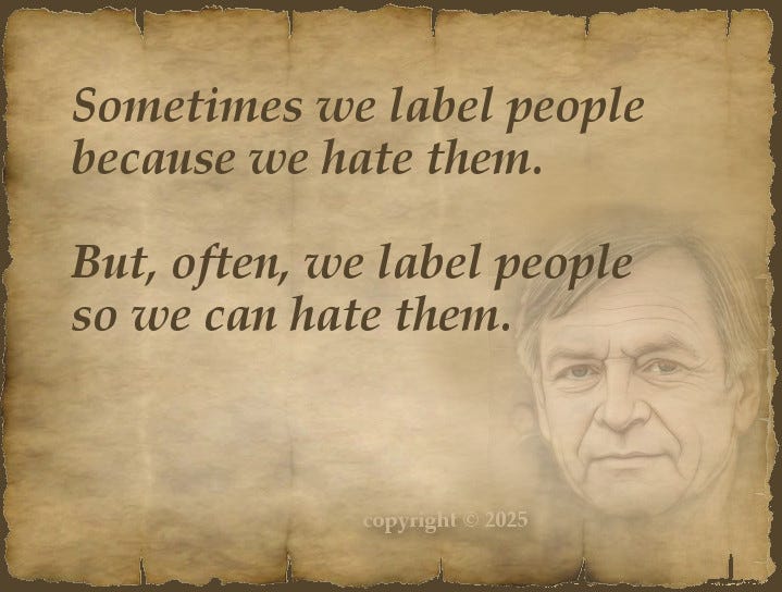But, often, we label people so we can hate them.